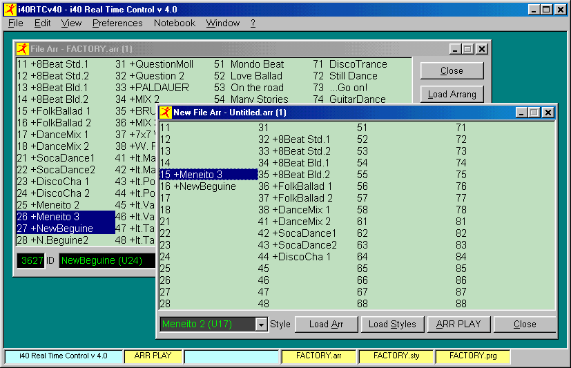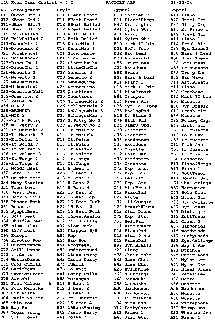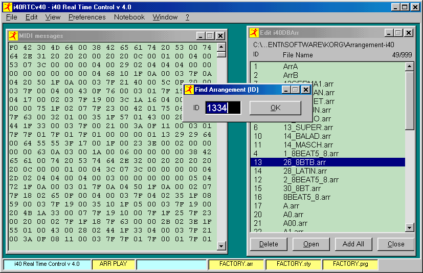 Messaggi MIDI, cerca Arrangement, Data Base i40DBArr/ MIDI messages, find Arrangement, Data Base i40DBArr