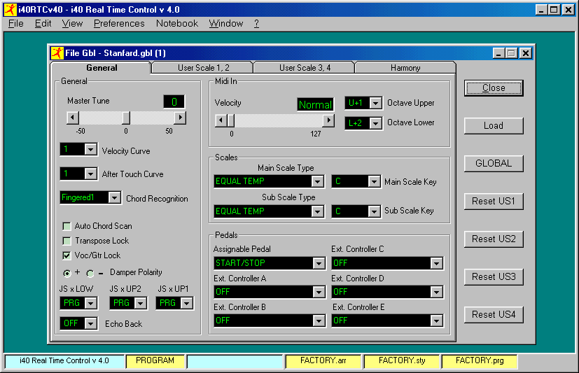 Parametri Global User Scale 1,2 / Global General User Scale 1,2