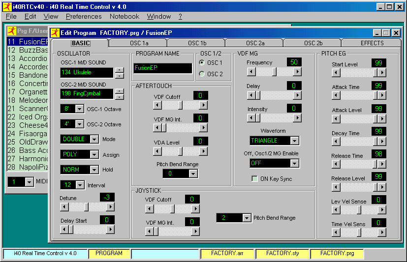 Editing Program parametri base oscillatori / Program editing Oscillators basic parameters
