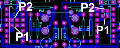 circuito stampato. I ponticelli P1 devono rimanere aperti. La figura accanto è relativa al lato componenti.