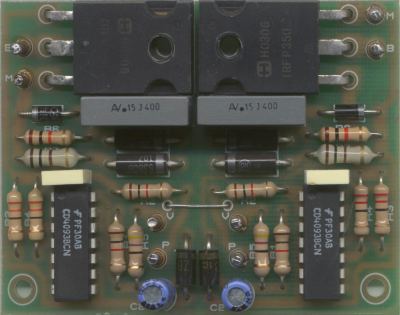 componenti verso l'alto e il bordo, opposto ai due fori dei mosfet, a