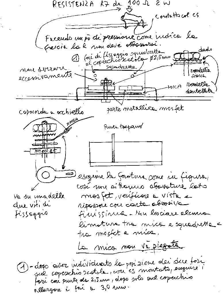 interporre tra mosfet e aletta l'apposita piastrina di mica (grigia) indispensabile per l'isolamento elettrico.